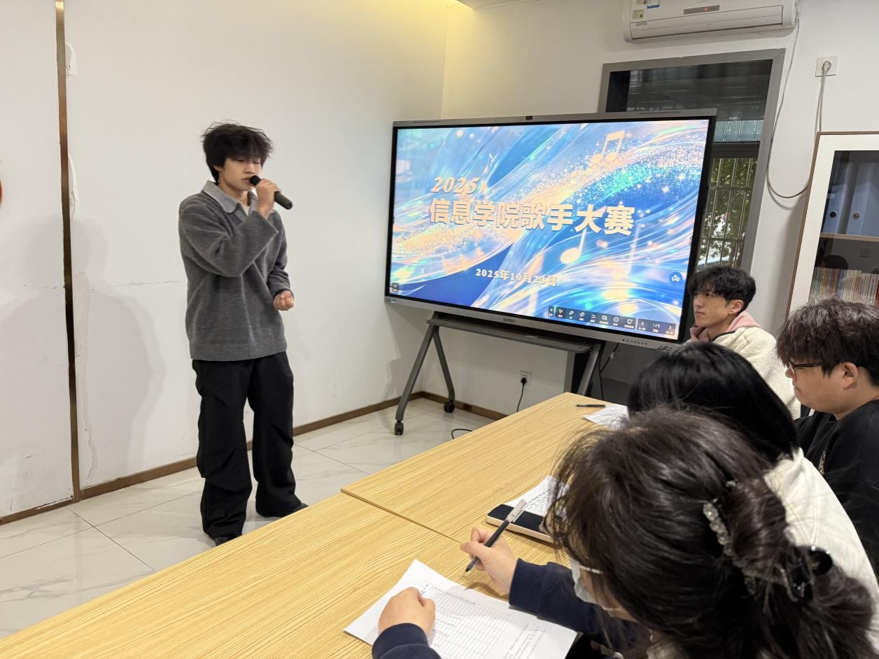 (通讯员:陈祯 梁好)为营造积极向上的校园文化氛围,展现大学生青春风采,10 月 23 日 17:00,信息学院团总支主办的 “青春律动 音你而来” 2025年信息学院歌手大赛在 12 栋一站式学生社区举行。比赛特邀学院学生科辅导员及 2023级优秀学生代表担任评委。