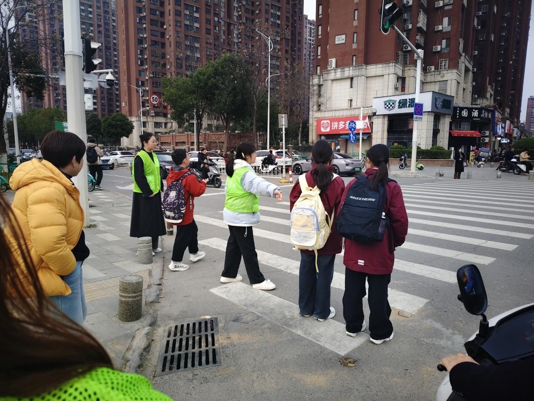 下午5时放学高峰,身着绿色马甲的志愿者准时到岗,分工协作筑牢安全防线。他们紧盯路面车流、引导学生安全通行,协助校方维护秩序;同时聚焦独自离校学生,通过陪伴等候、暖心沟通关注其情绪状态,将志愿服务与心理关怀深度融合,让“护学岗”成为交通安全守护点与童心成长暖心港。